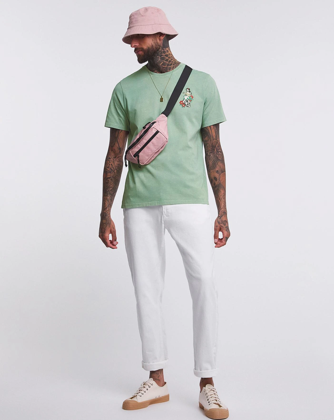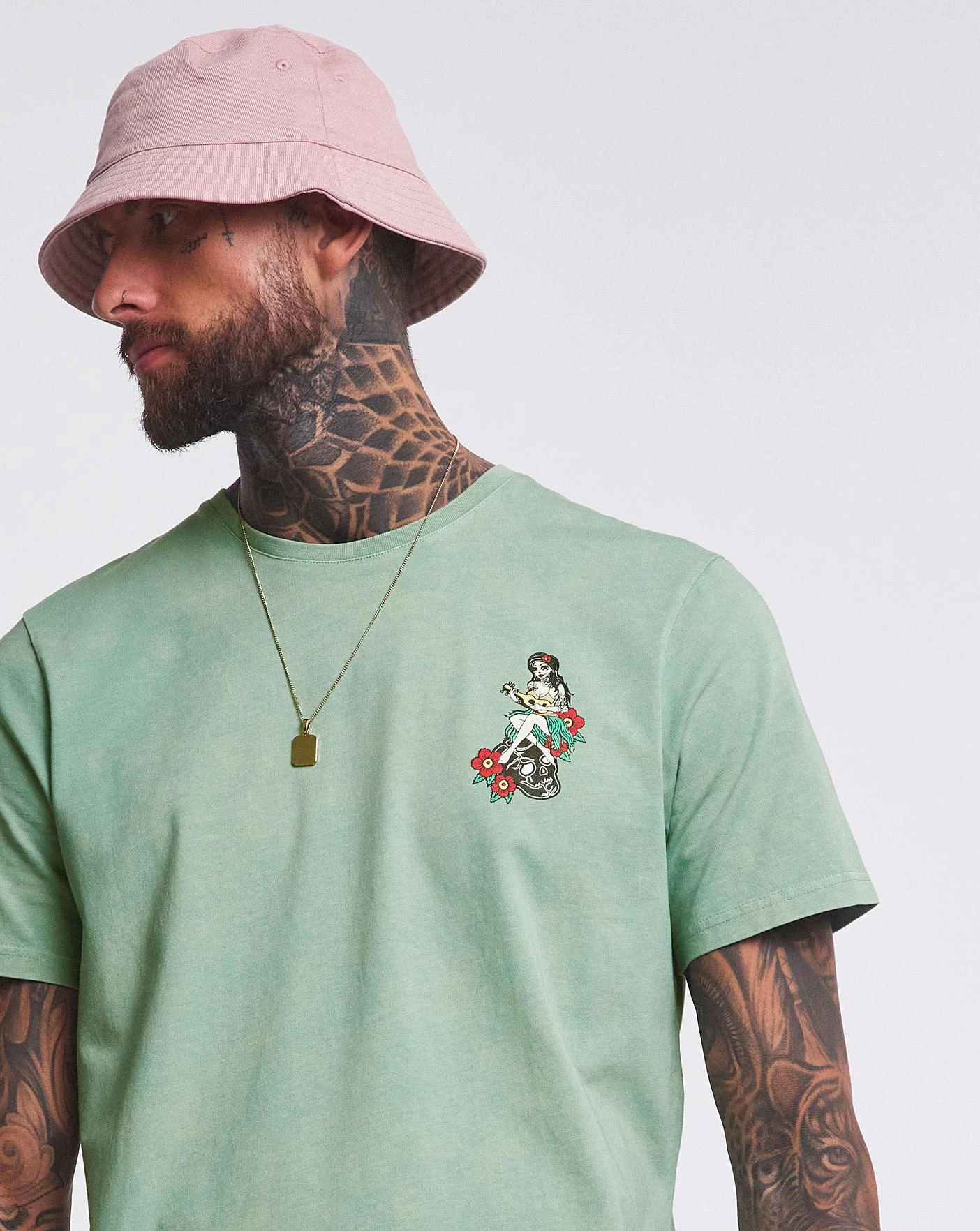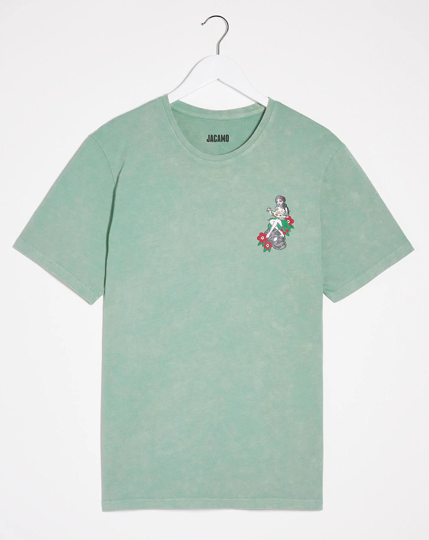 This acid wash graphic t-shirt in a long length is trendy and comfortable for the season. With the graphic, this creates a casual look for any event this season.