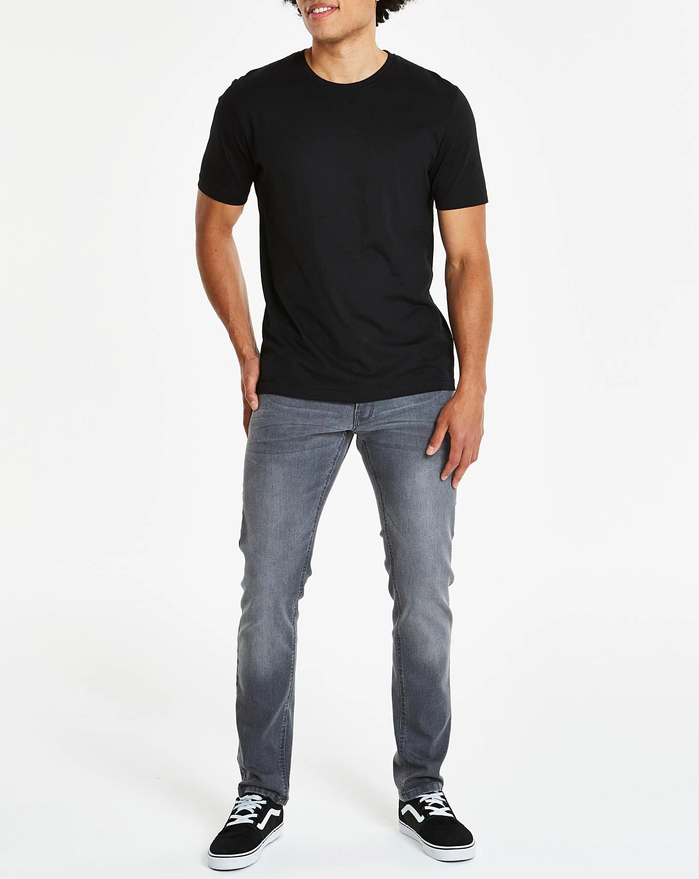 Basic crew-neck T-shirt featuring short sleeves.