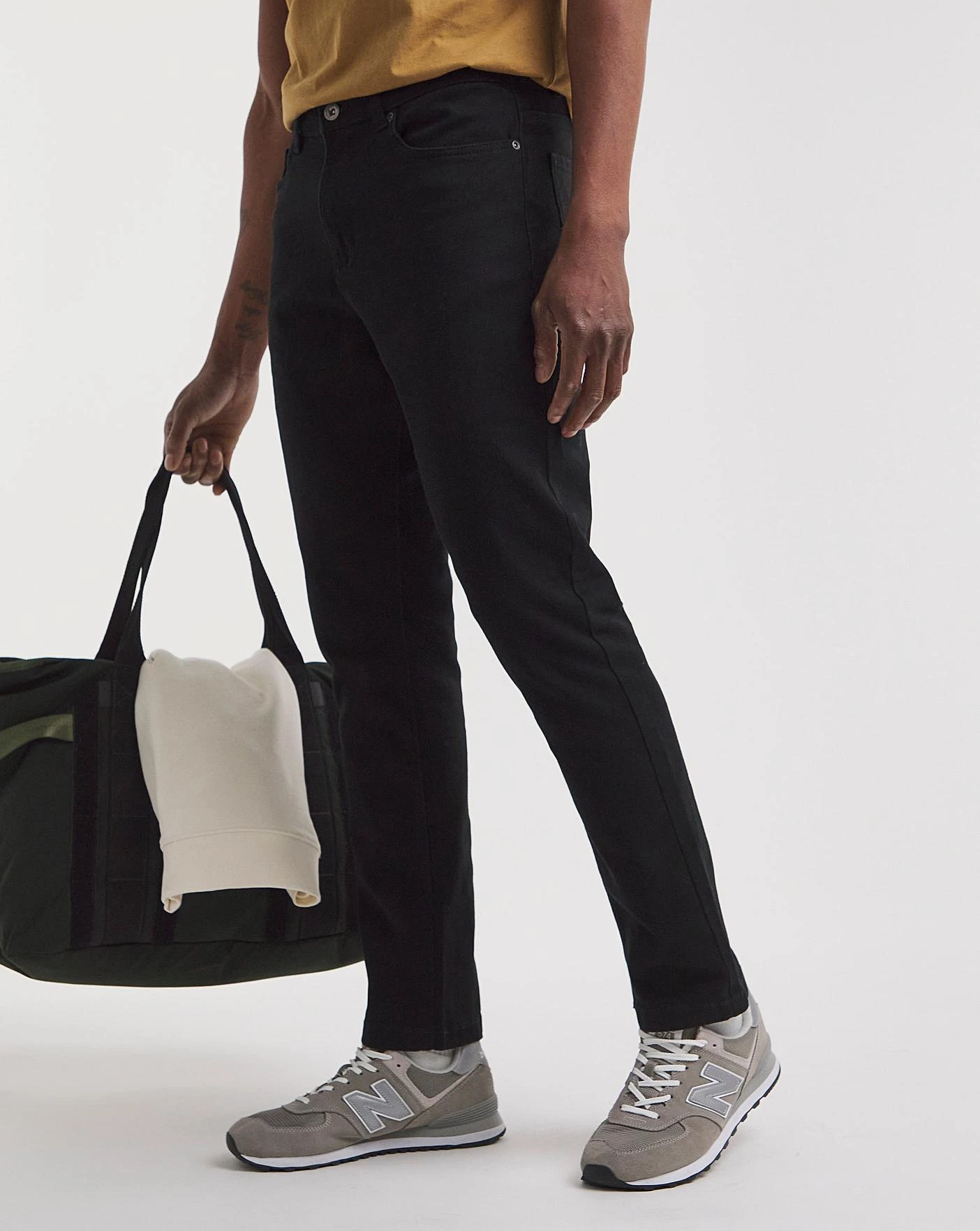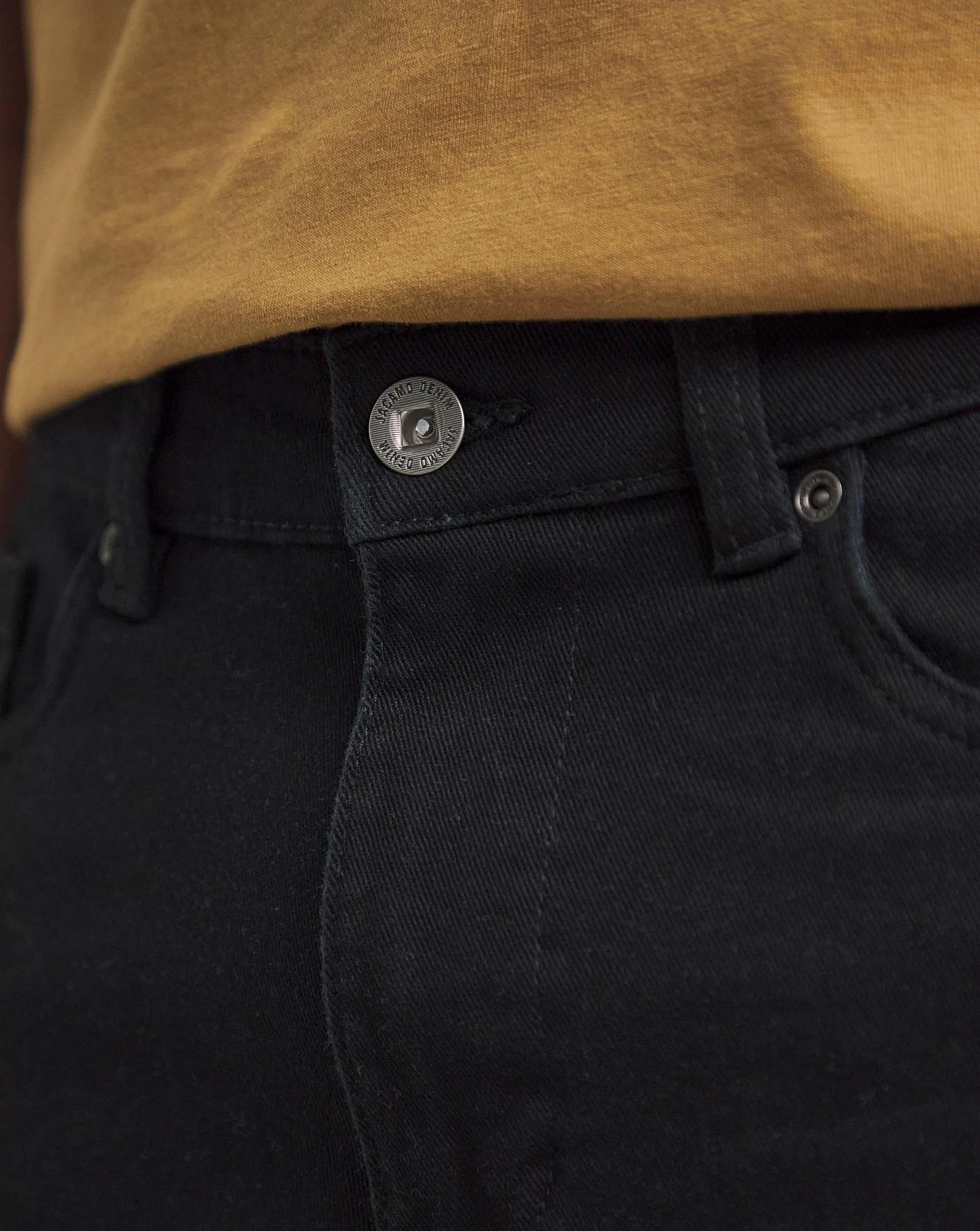 Slim fit Black gabardine jeans with two front and two rear pockets and a zip/button fly fasten.
