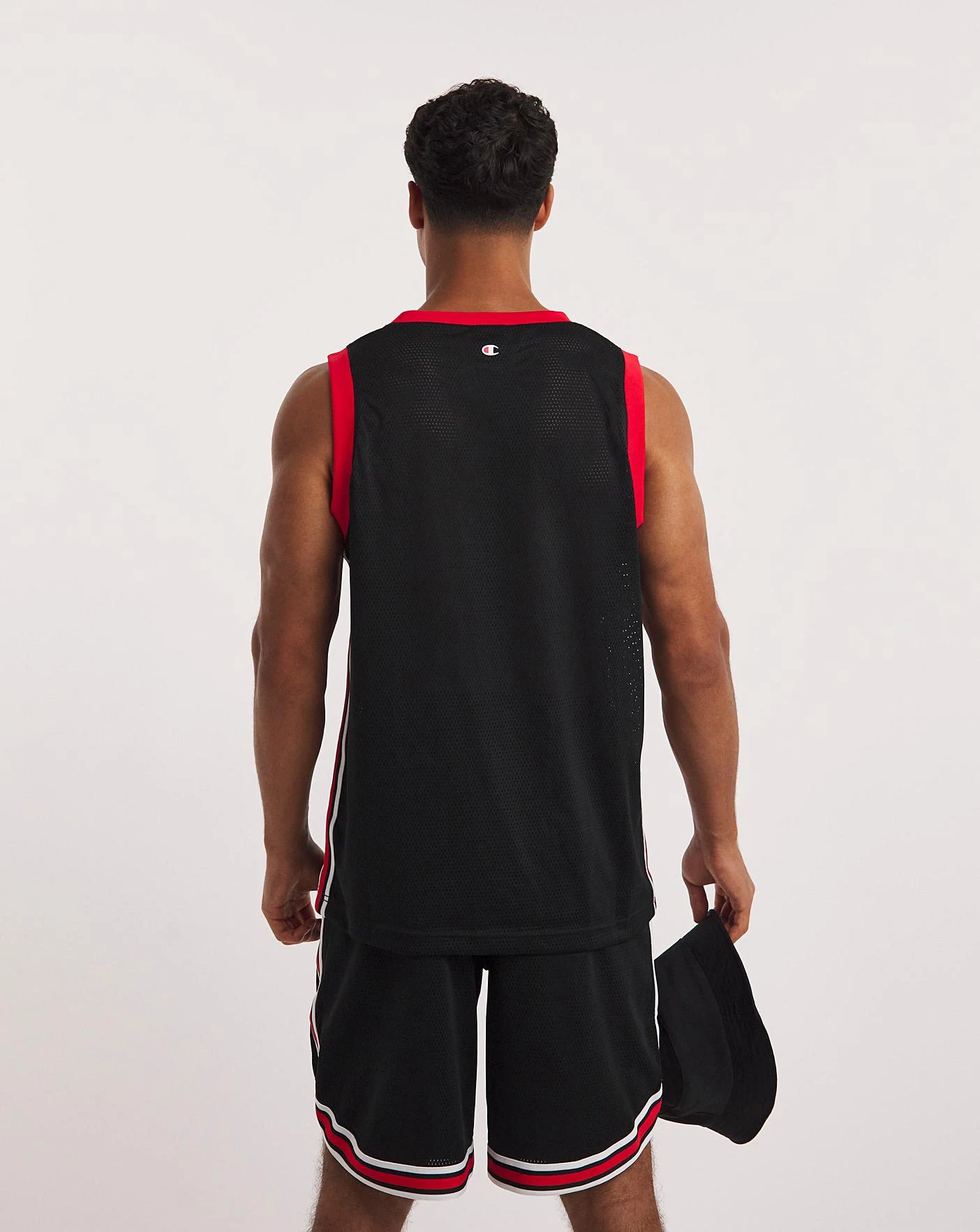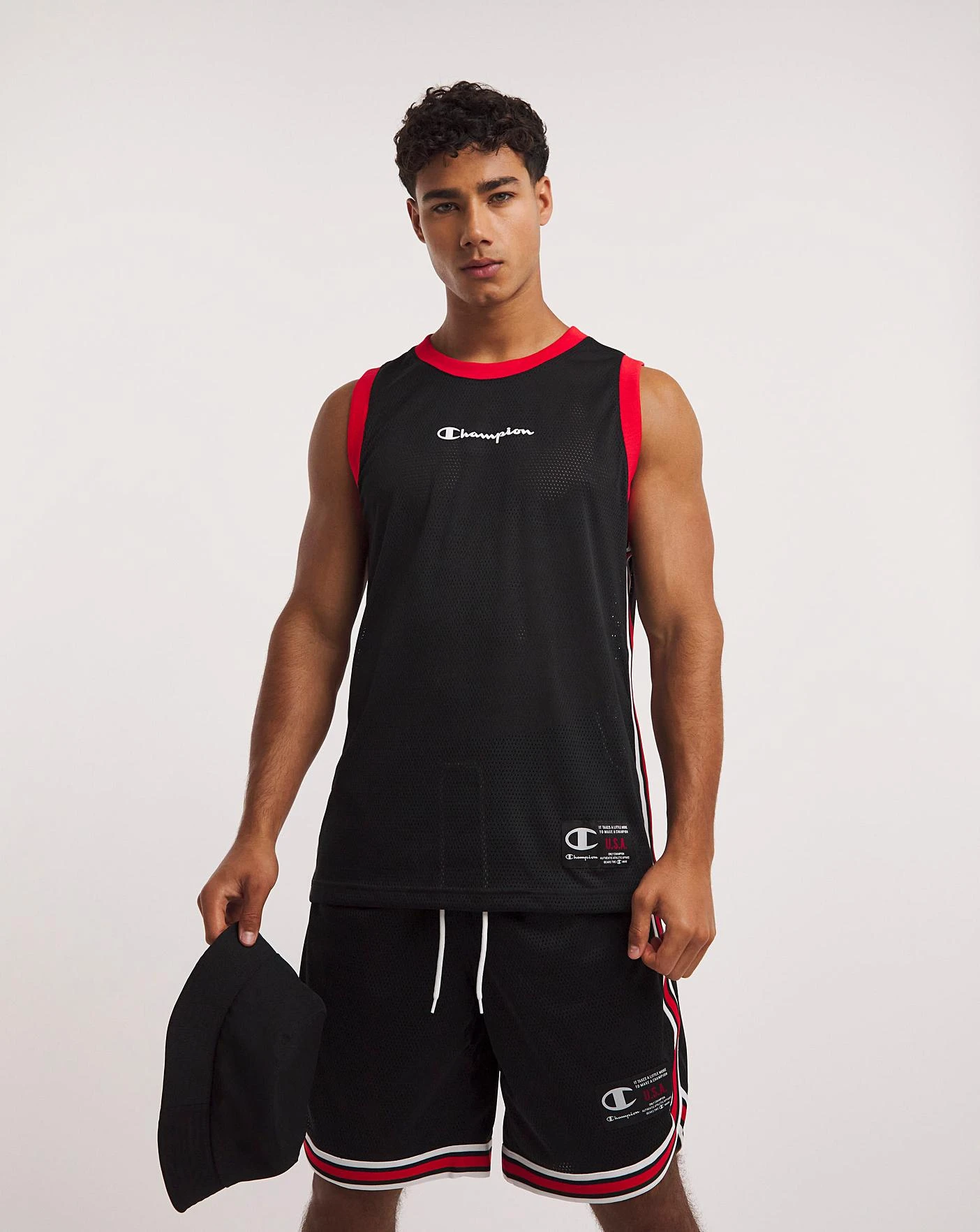 Retro inspired basketball vibes flow heavily through this mens must have item. The mens tank is elevated thanks to the multicolour knitted tape inserts down the seams.