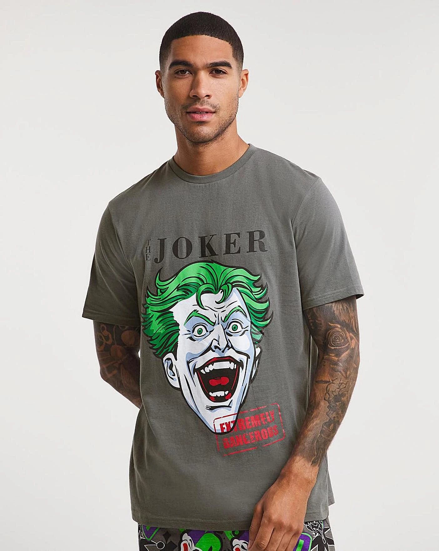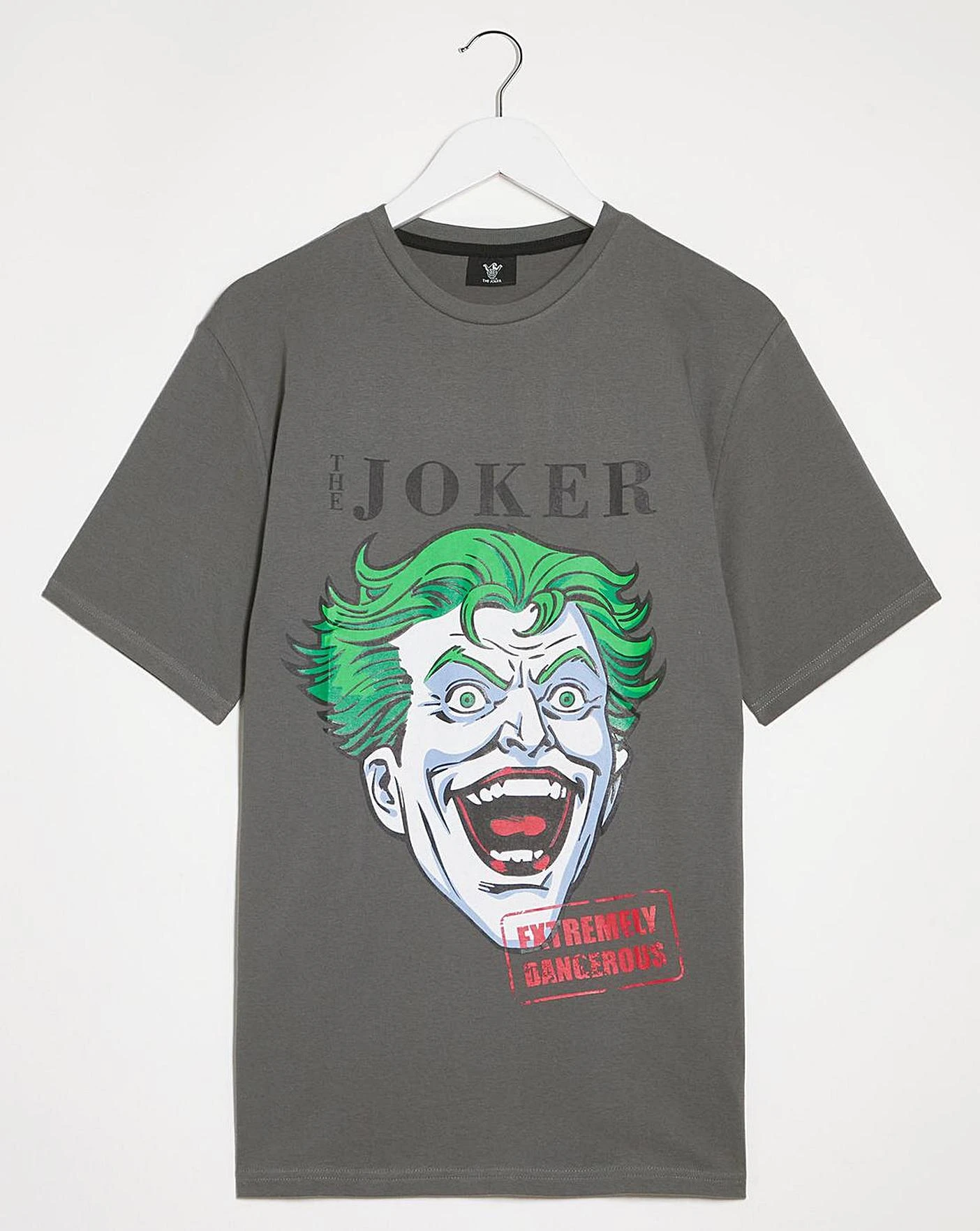- The Joker DC Lounge Tshirt In Grey. Featuring A Crew Neck, Short sleeves And Amazing ‘Dangerous’ Print On The Front