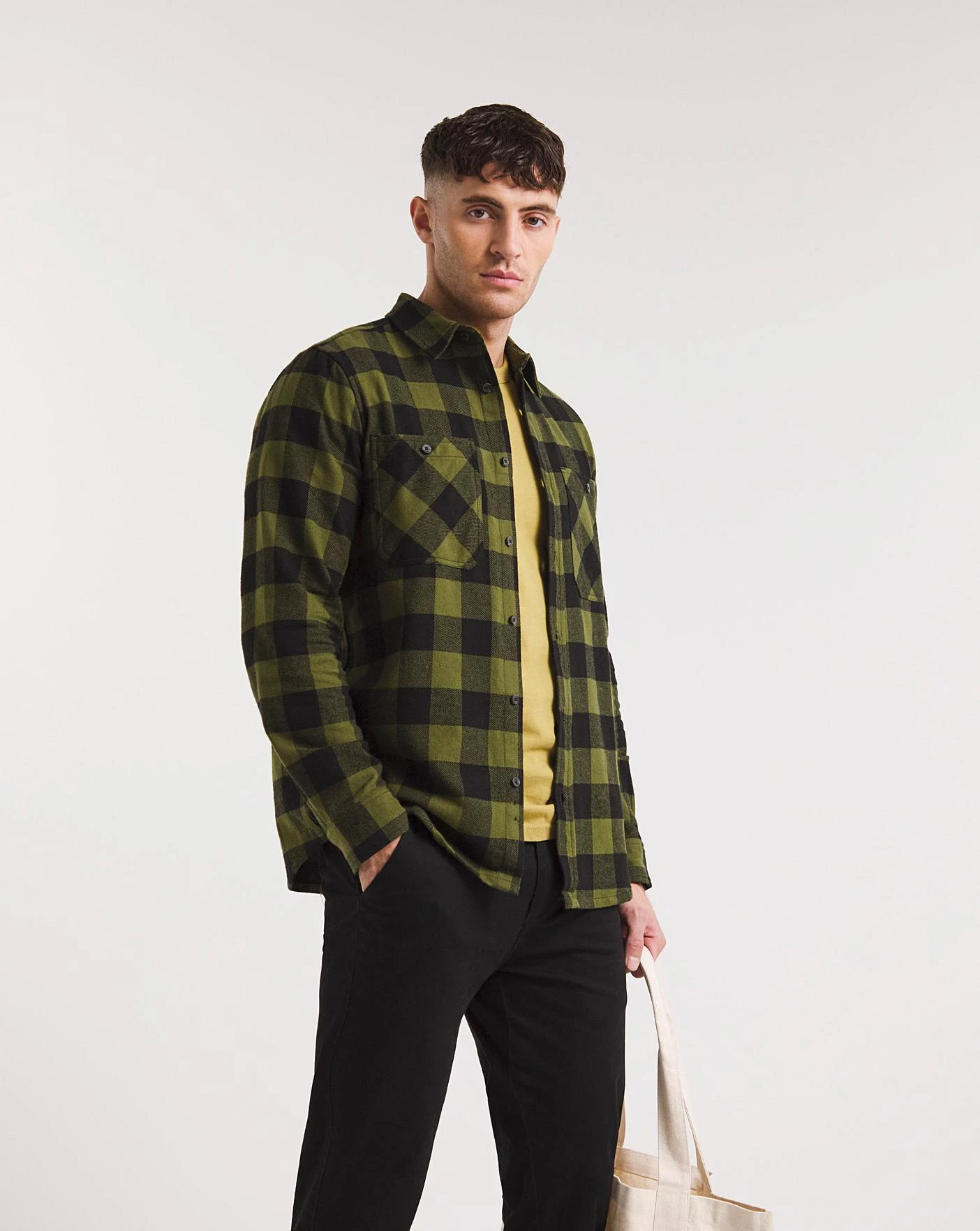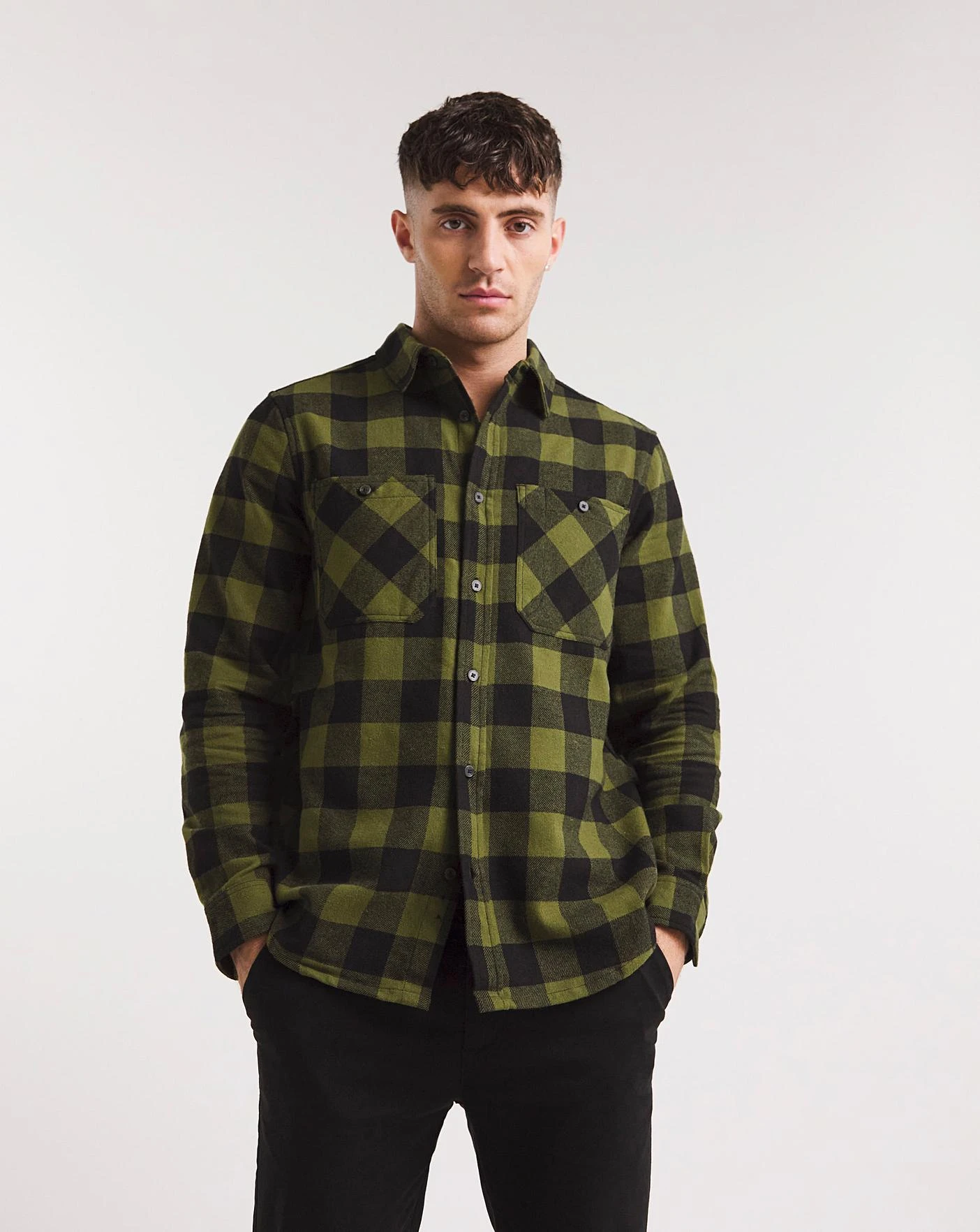 This Jacamo long sleeve double pocket check flannel shirt in green is the perfect piece to have in your wardrobe this season. Pair it with a tshirt and some jeans for a realxed look.