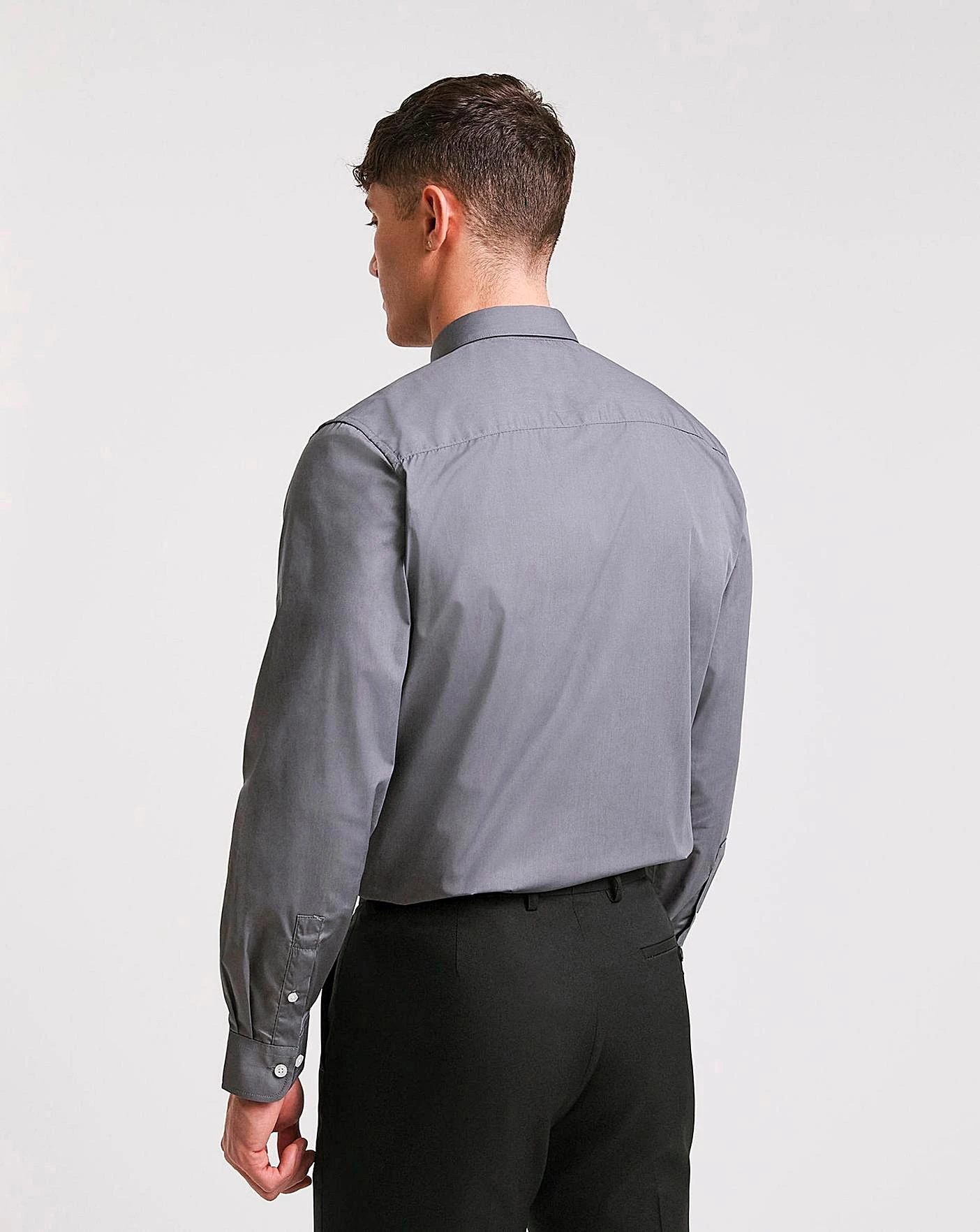 This long-sleeved plain shirt is perfect for any formal event. Finished with a button front fastening and button cuffs for extra movement and comfort.