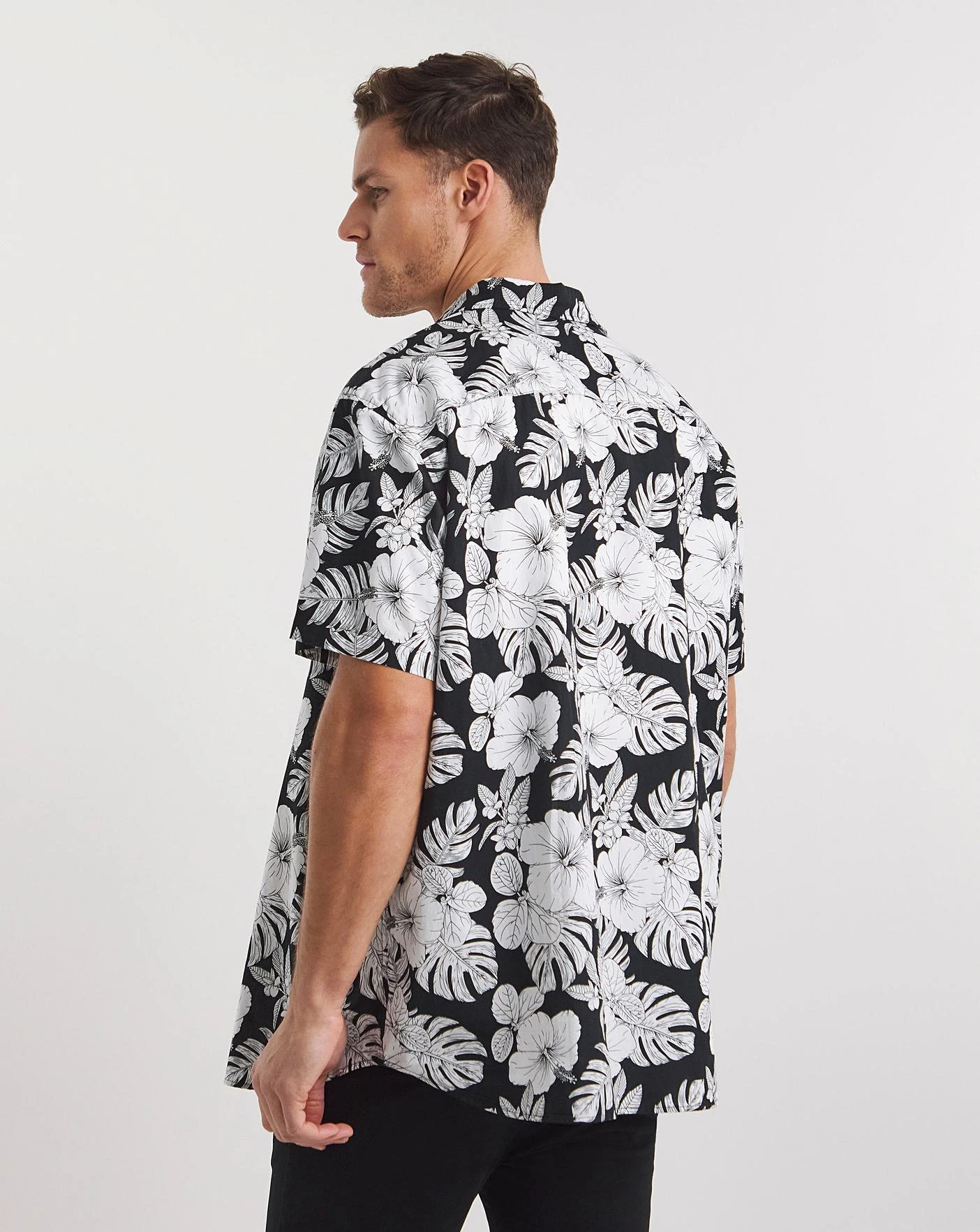 Jack & Jones Becs all over print shir t in White. Model wears a size 1L