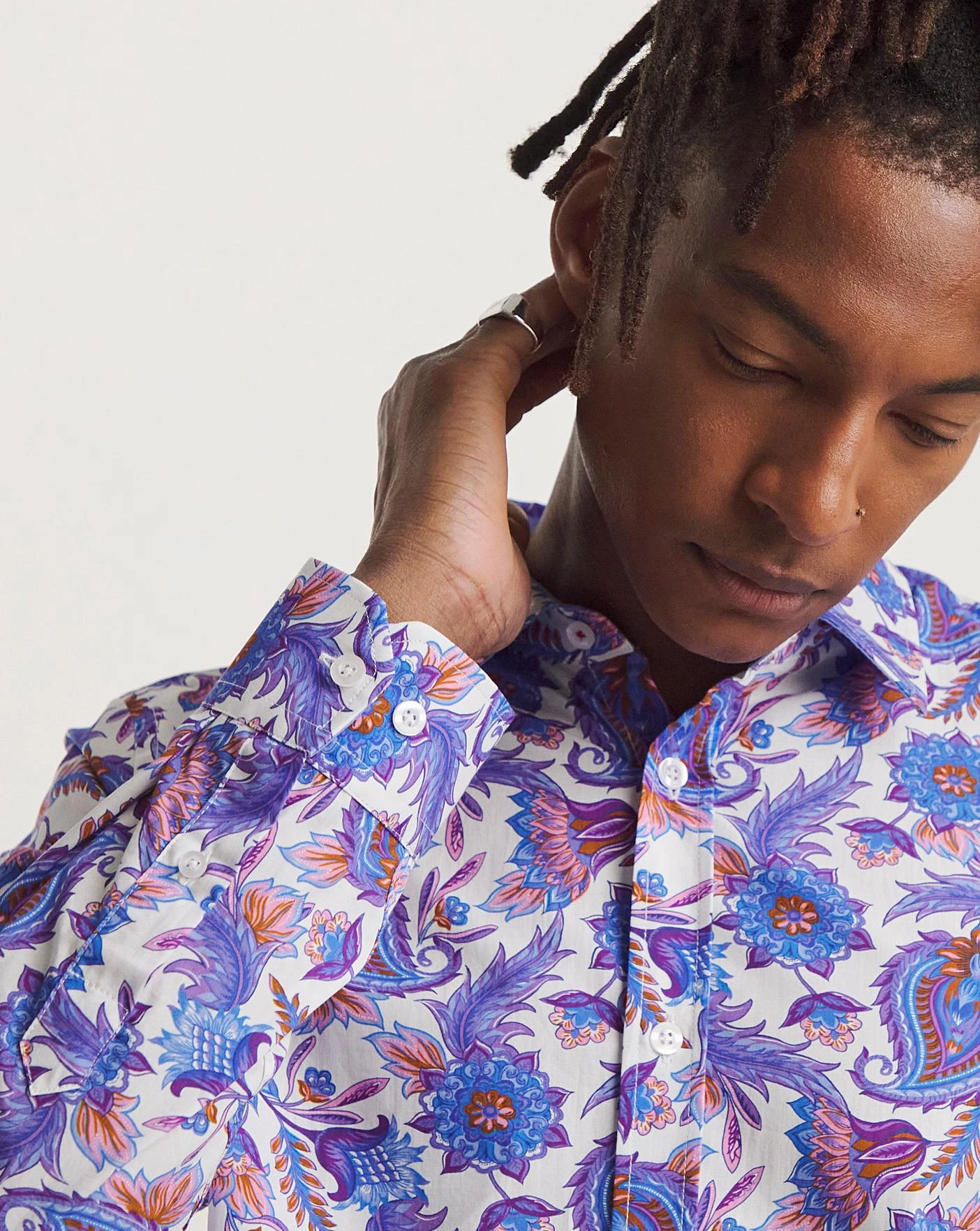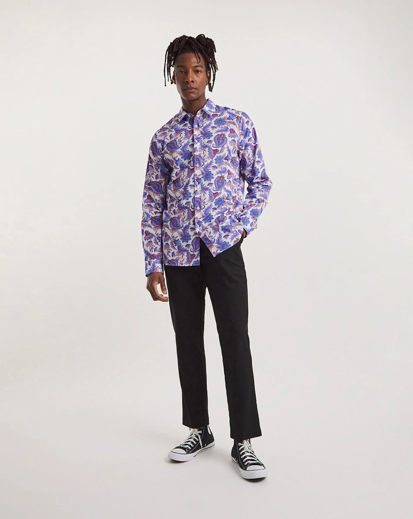 This Joe Browns Paisley Shirt is the perfect addition to your wardrobe. Long length shirt in Purple. Model wears a size M
