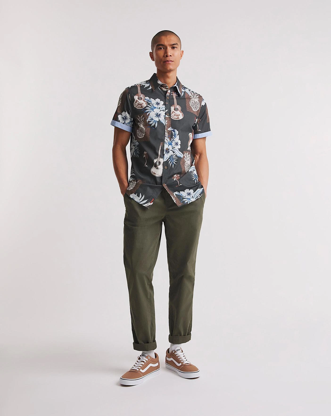 Joe Browns Summer Beats Shirt Long length in Navy. Model wears a size M