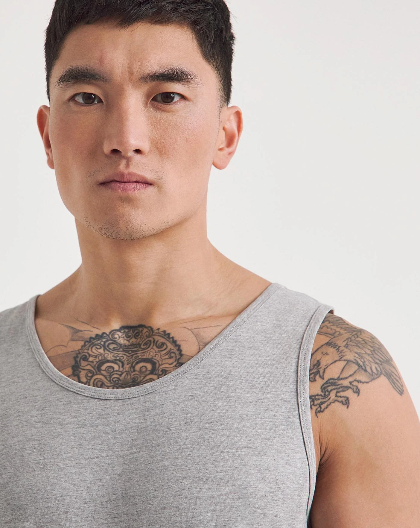 This Vest in grey marl is comfortable and fresh for the season. Pair with some basic shorts from our collection for a casual look.