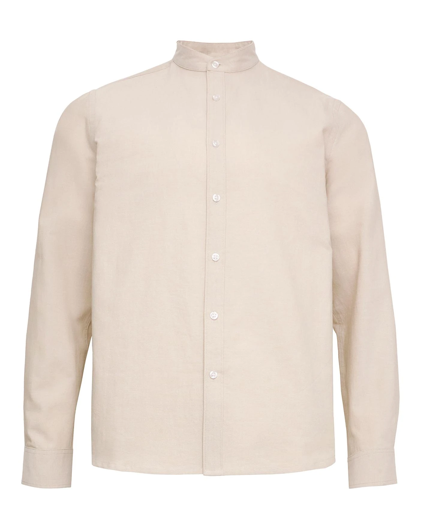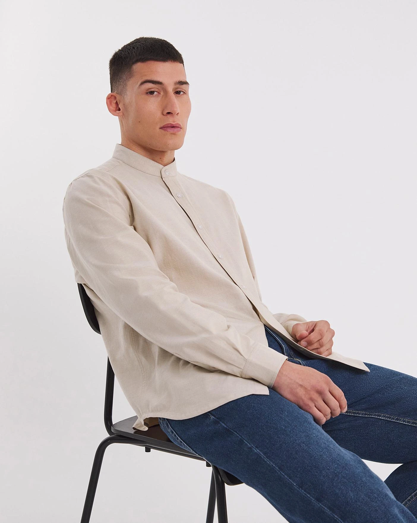 This Jacamo long sleeve grandad oxford shirt in light beige is a great shirt to add to your wardrobe this season. Pair it with some chinos and loafers for a cool casual look.