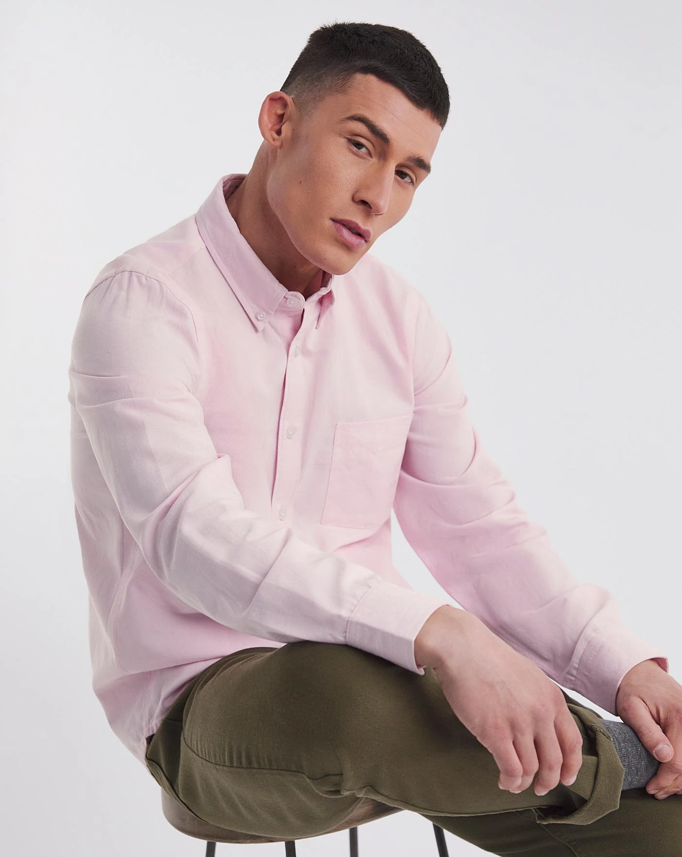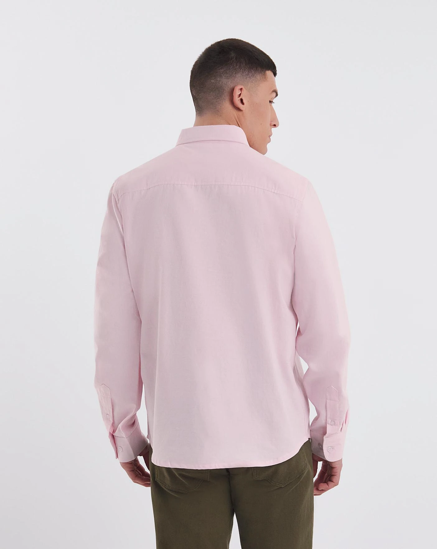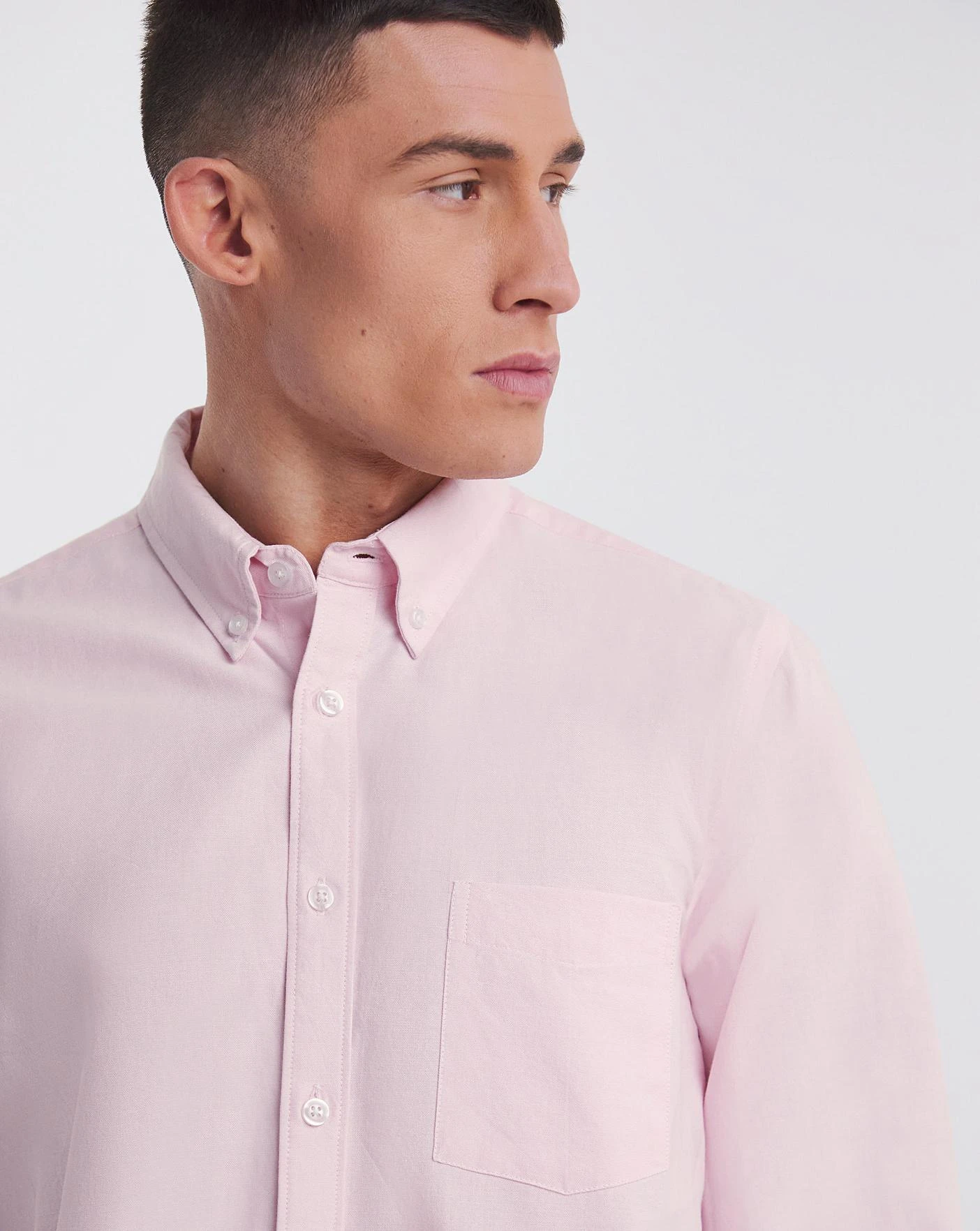 Long sleeve oxford shirt in pastel pink. This classic shirt also comes in a long length and is perfect to pair with some casual jeans for a daytime look.
