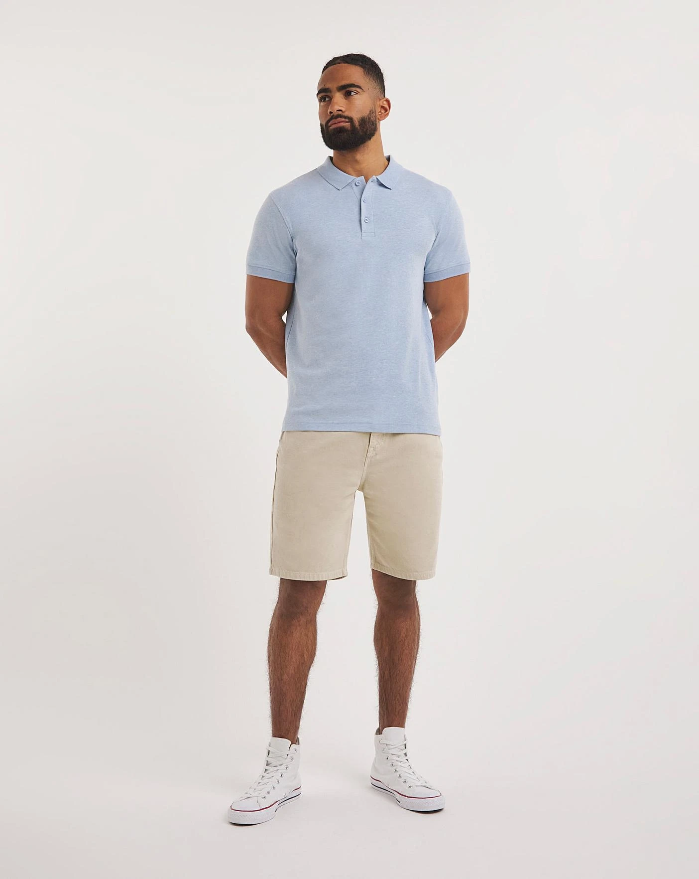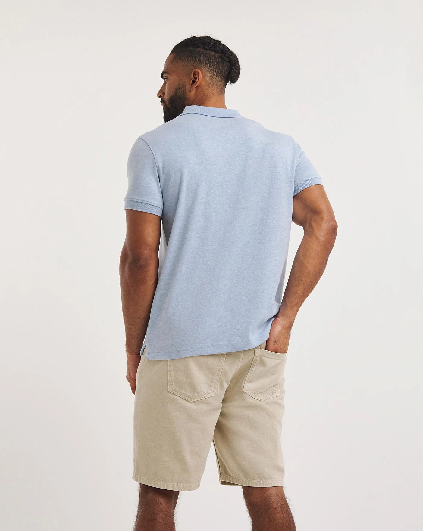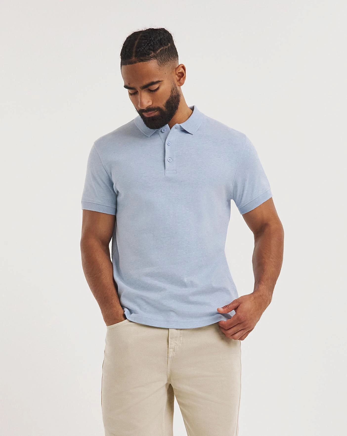 This Marled Jersey Polo in a long length in blue is fresh and stylish for the season. The long length creates added fit and comfort.