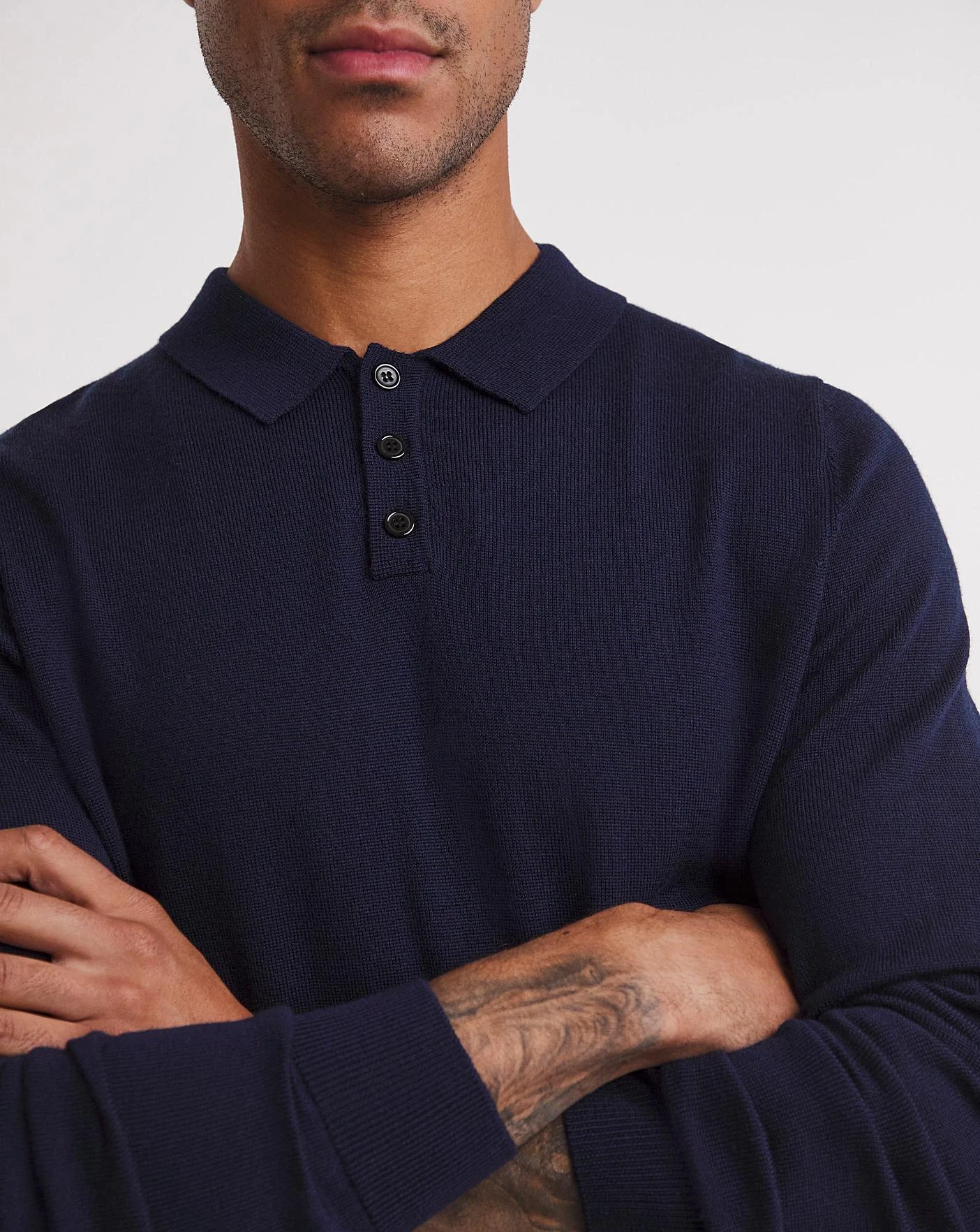 Elevate your wardrobe with this navy long sleeve polo. Made from merino wool for extra comfort and warmth.