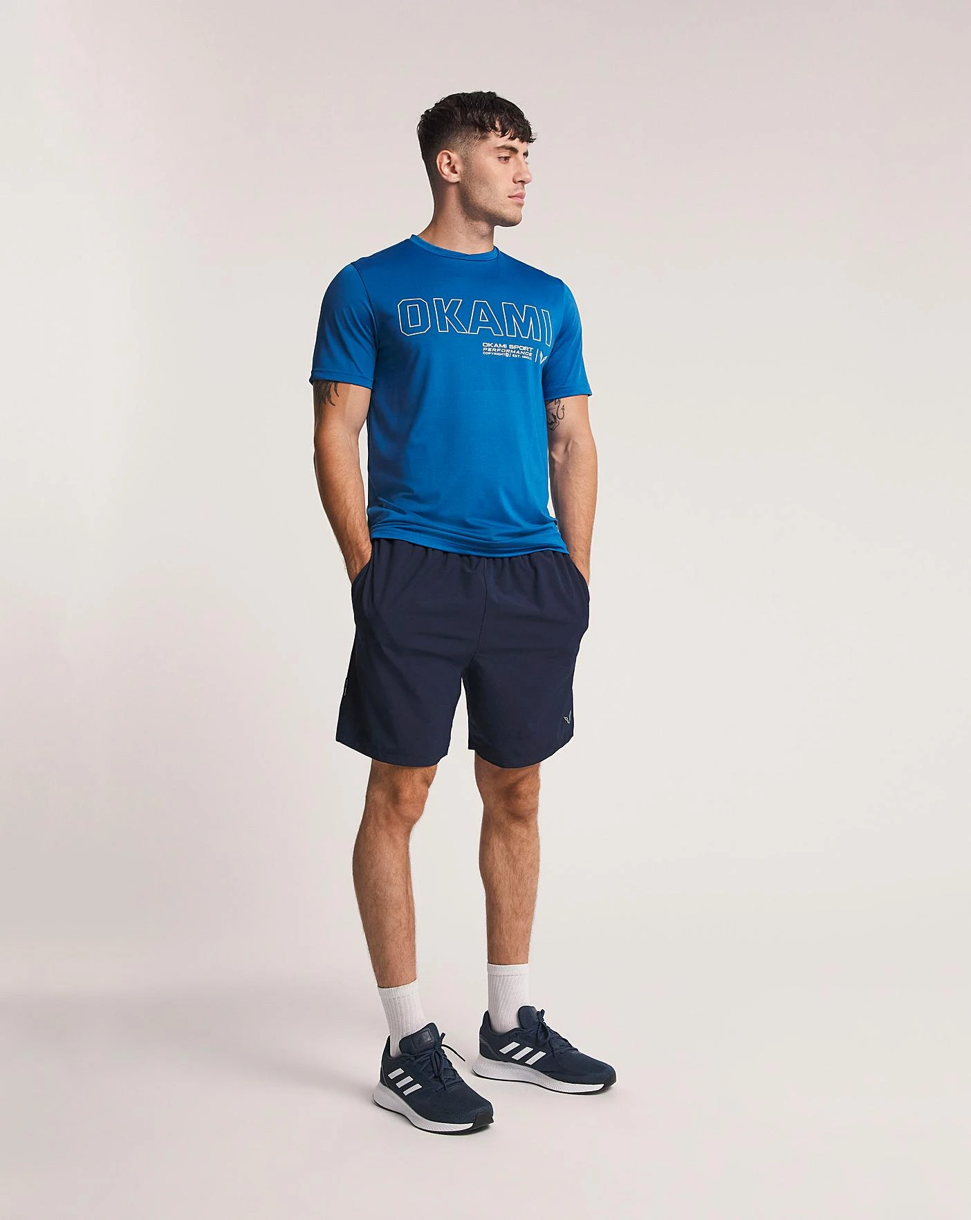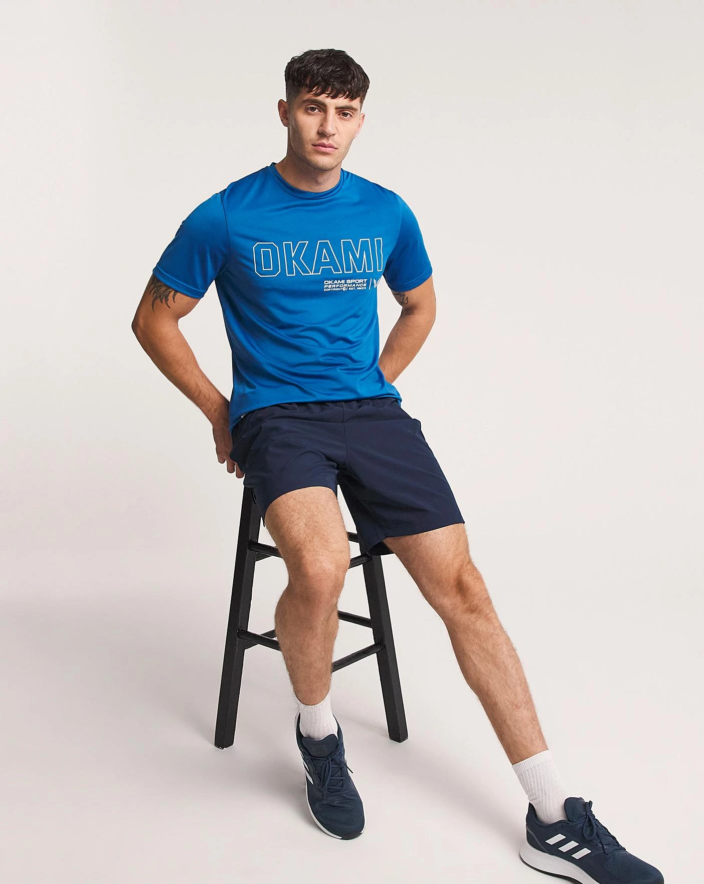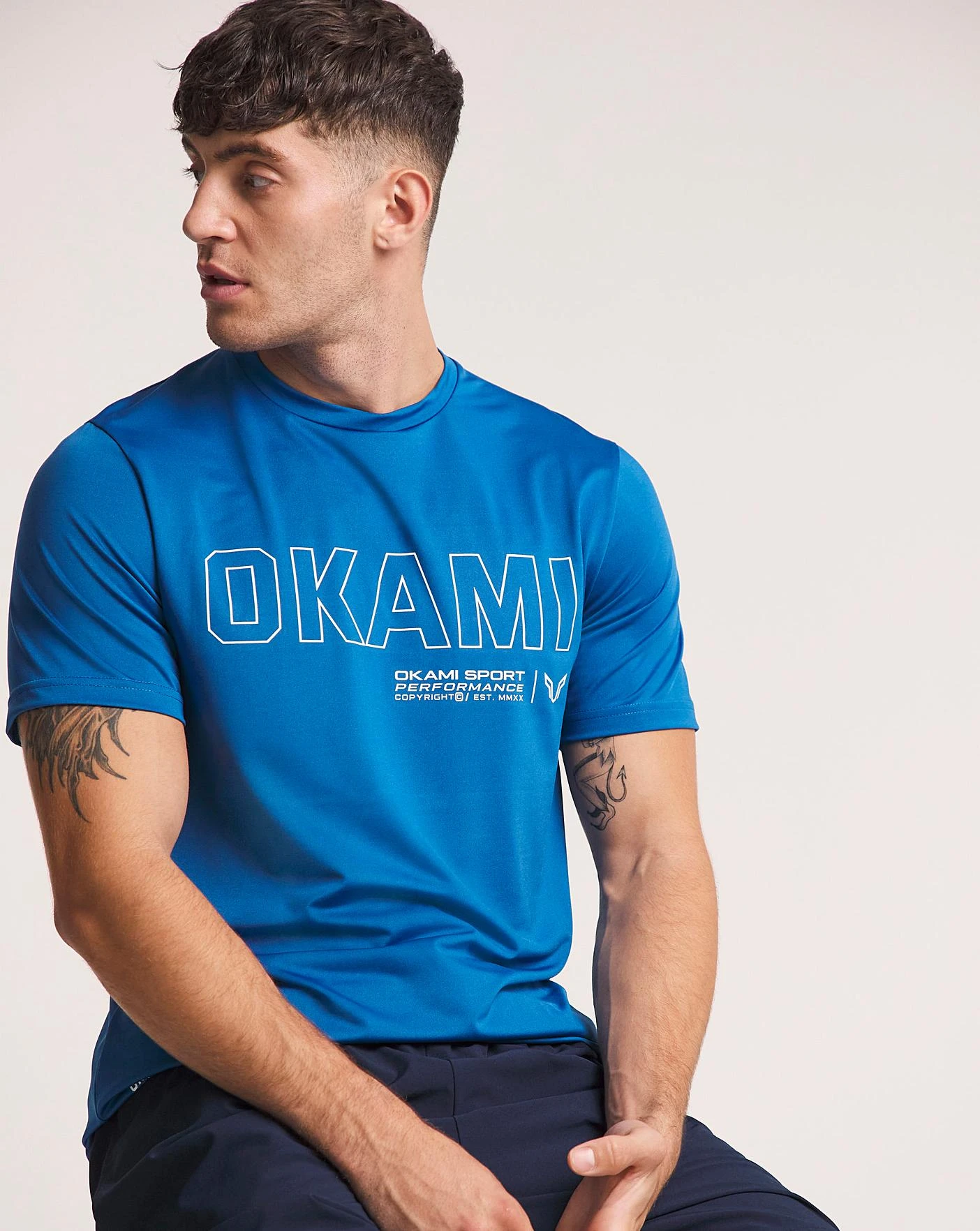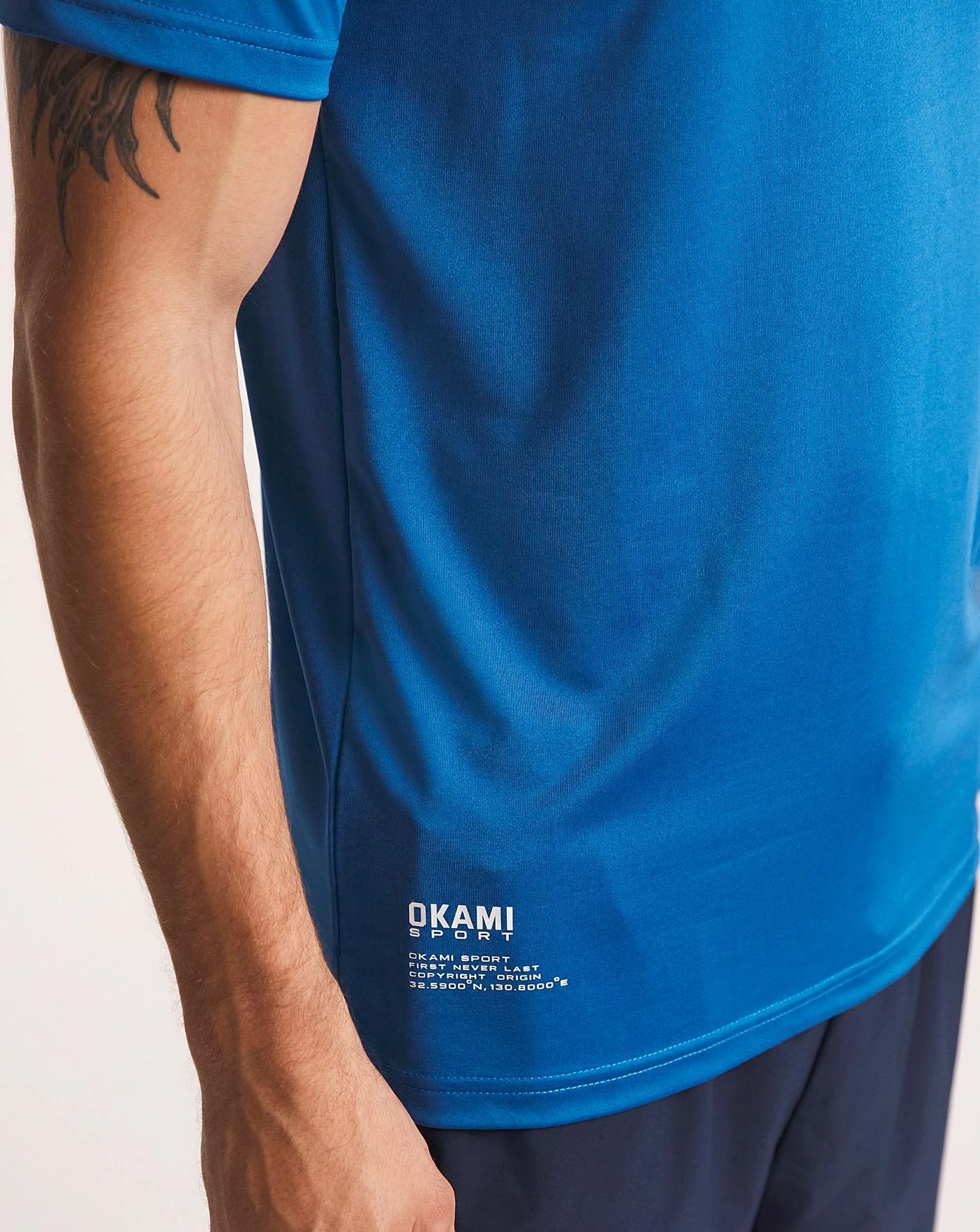 New Okami Stalis T-Shirt in cobalt with logo graphic on the chest and graphic detail on the bottom right of the t shirt.