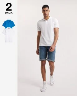 This Pack of 2 Pique Polos in blue and white are fresh and great value for the season. The long length creates added fit and comfort.