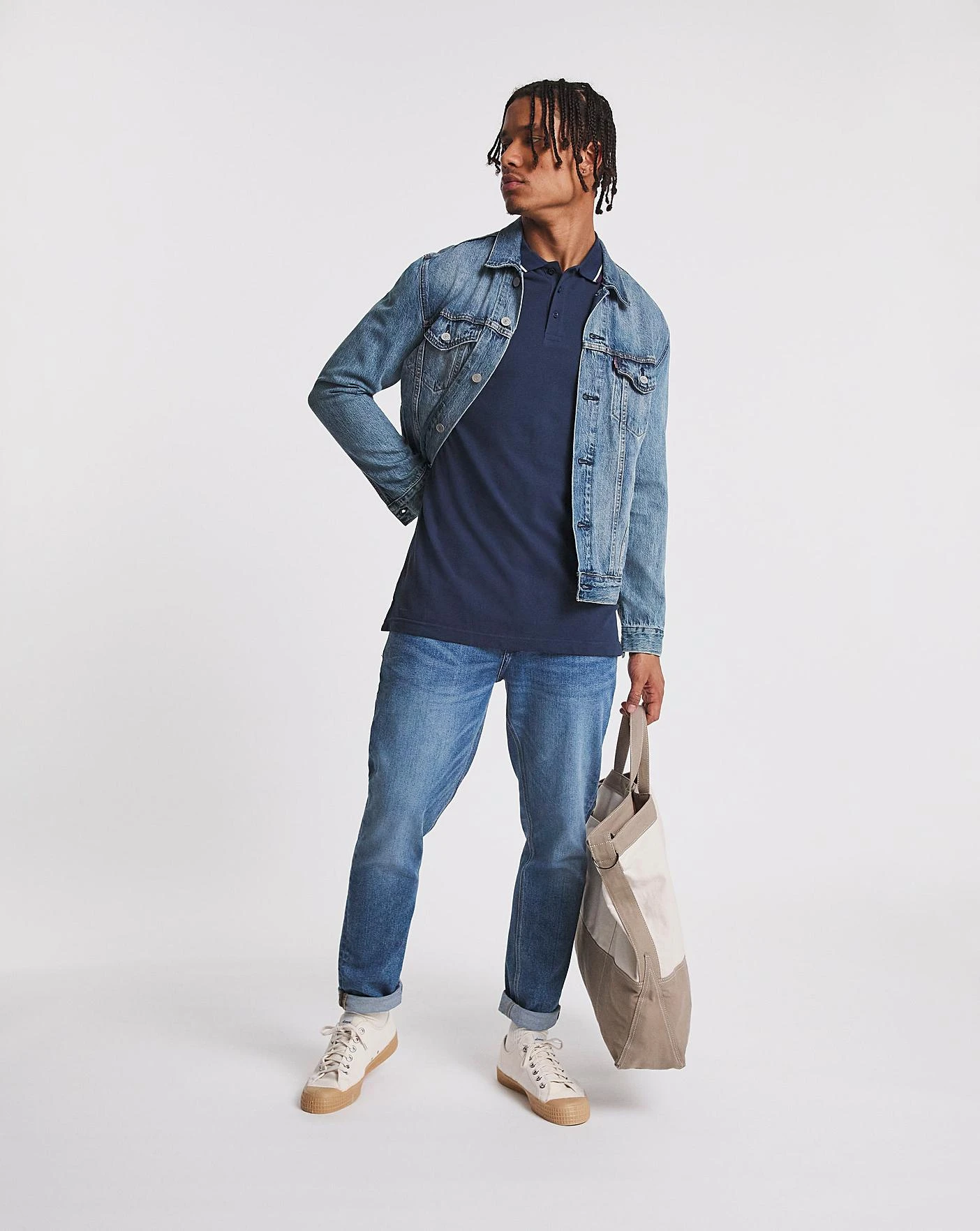 This pique tipped polo in a long length in navy is fresh and trendy for the season. Pair with some classic chinos for a smart casual look.