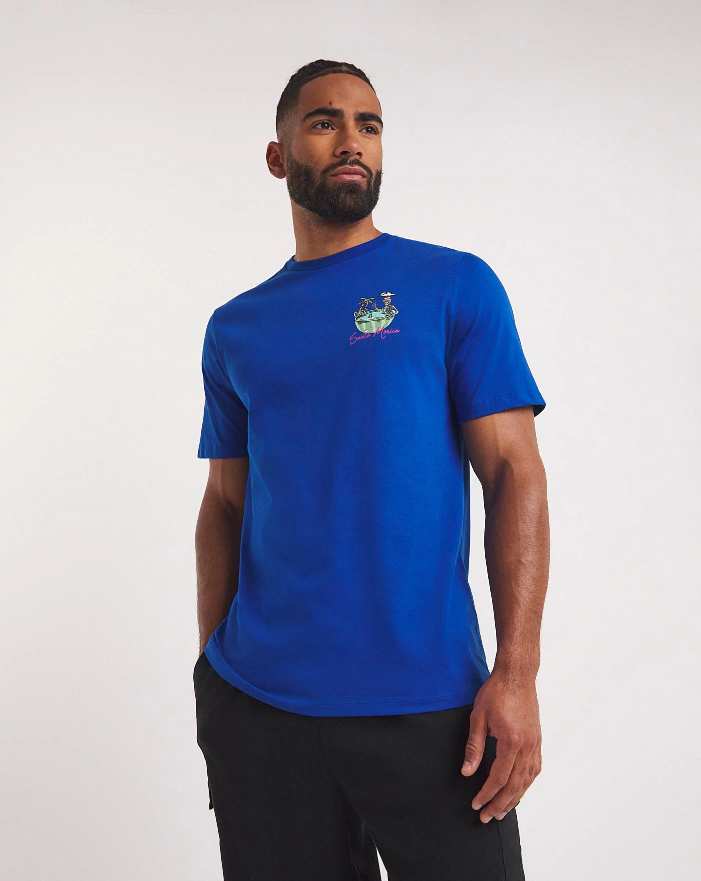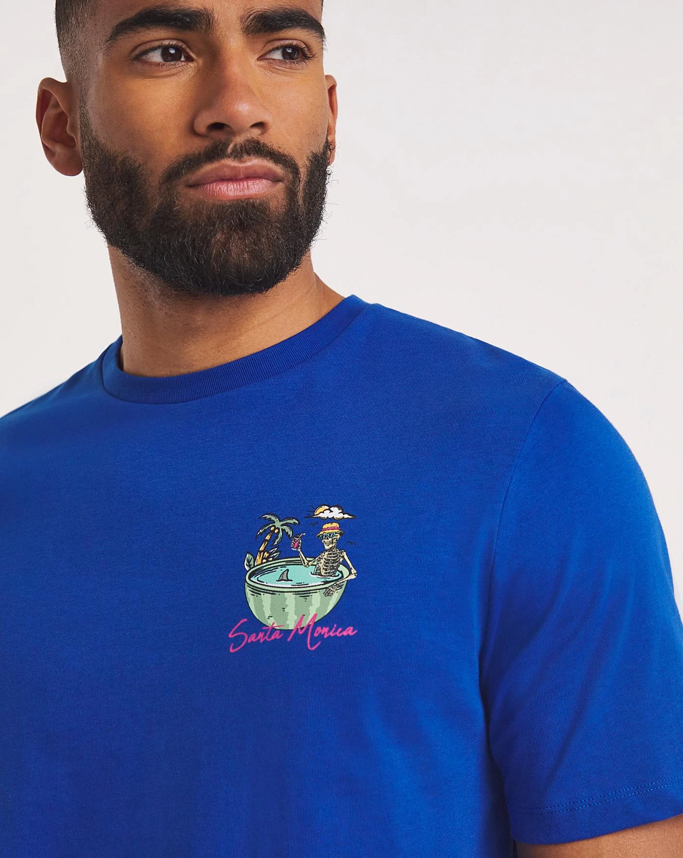 This Santa Monica Skull Graphic T-shirt in a long length is comfortable and stylish for the season. Pair this with some chinos or jeans for any smart casual occasion.