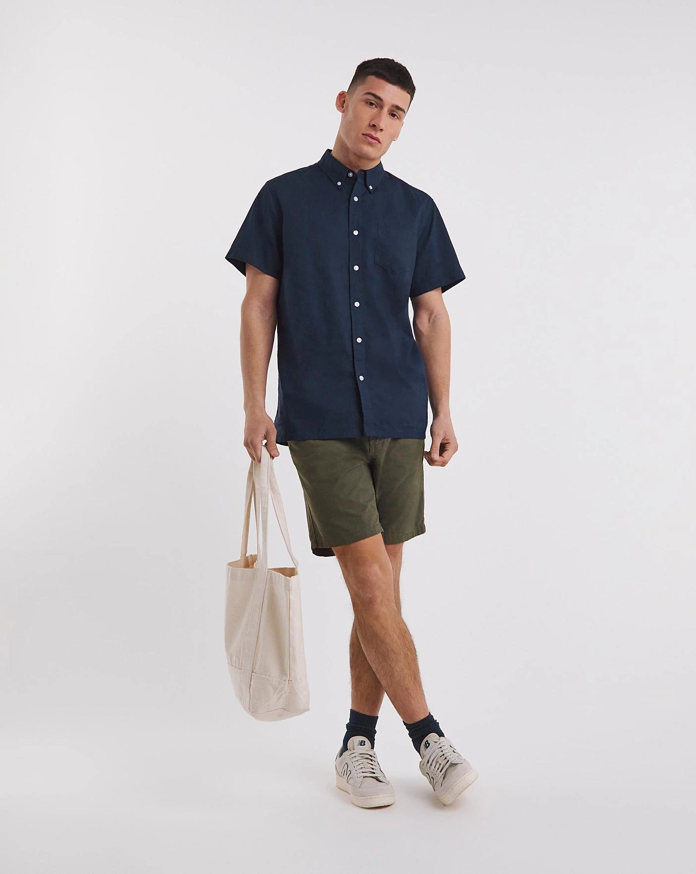 This short sleeve linen shirt in comes in a dark blue and is perfect for the warmer days. In a light breathable linen fabric, it is perfect to pair with some casual chinos.