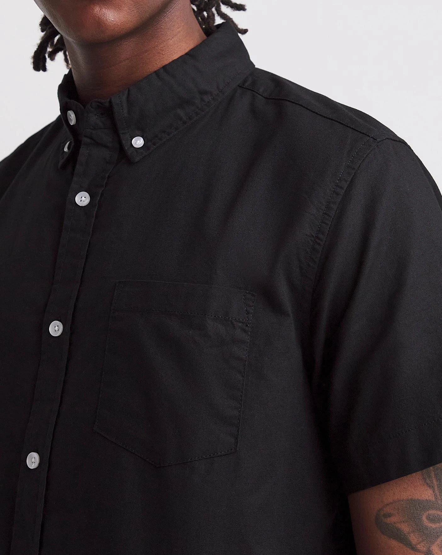 Short sleeve regular length oxford shirt in Black. Perfect to pair with some casual trousers for a relaxed look.