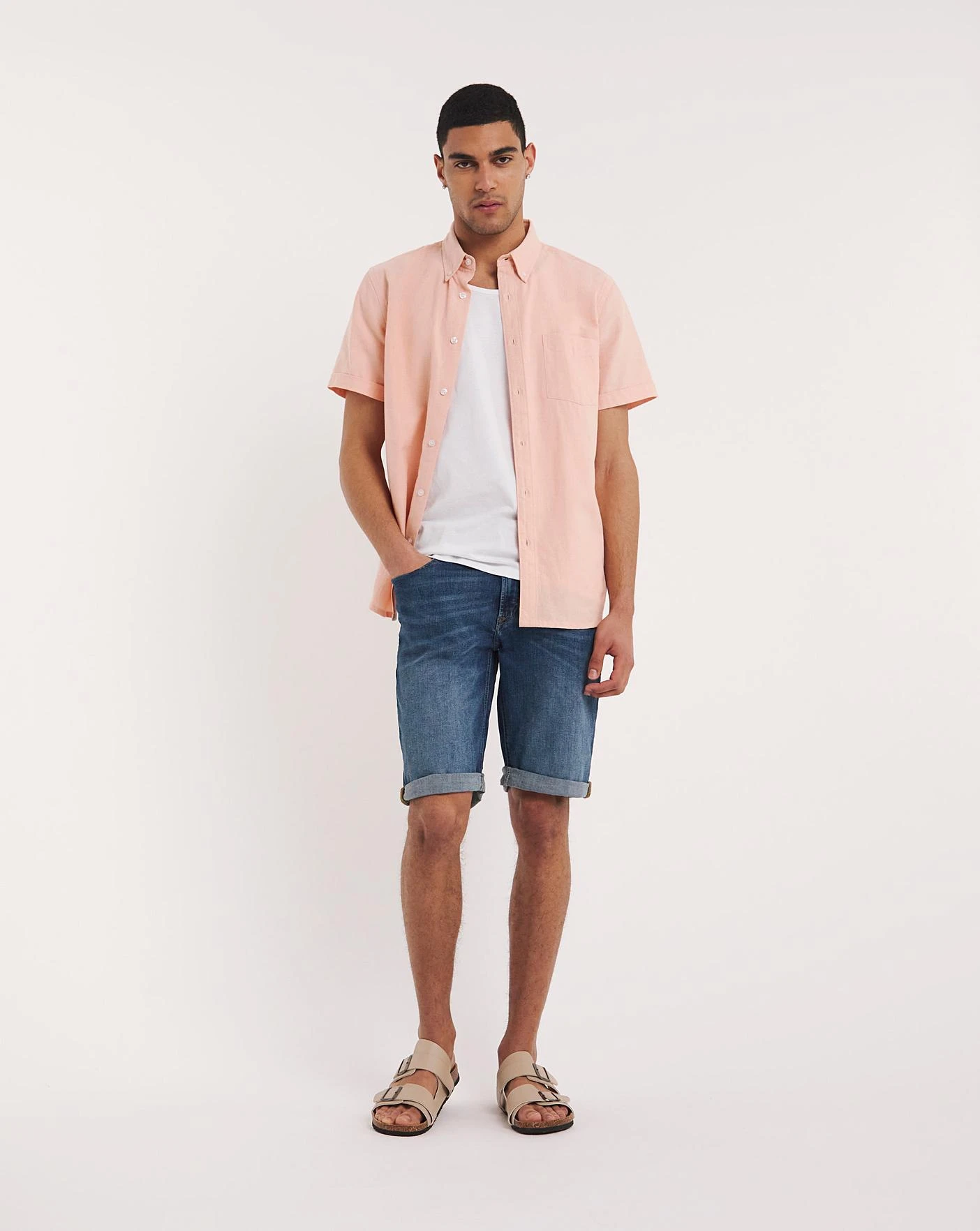 This Jacamo short sleeve oxford shirt in coral is the perfect everyday shirt to have this season. Pair it with some light chinos and cool sandals for a relaxed look.