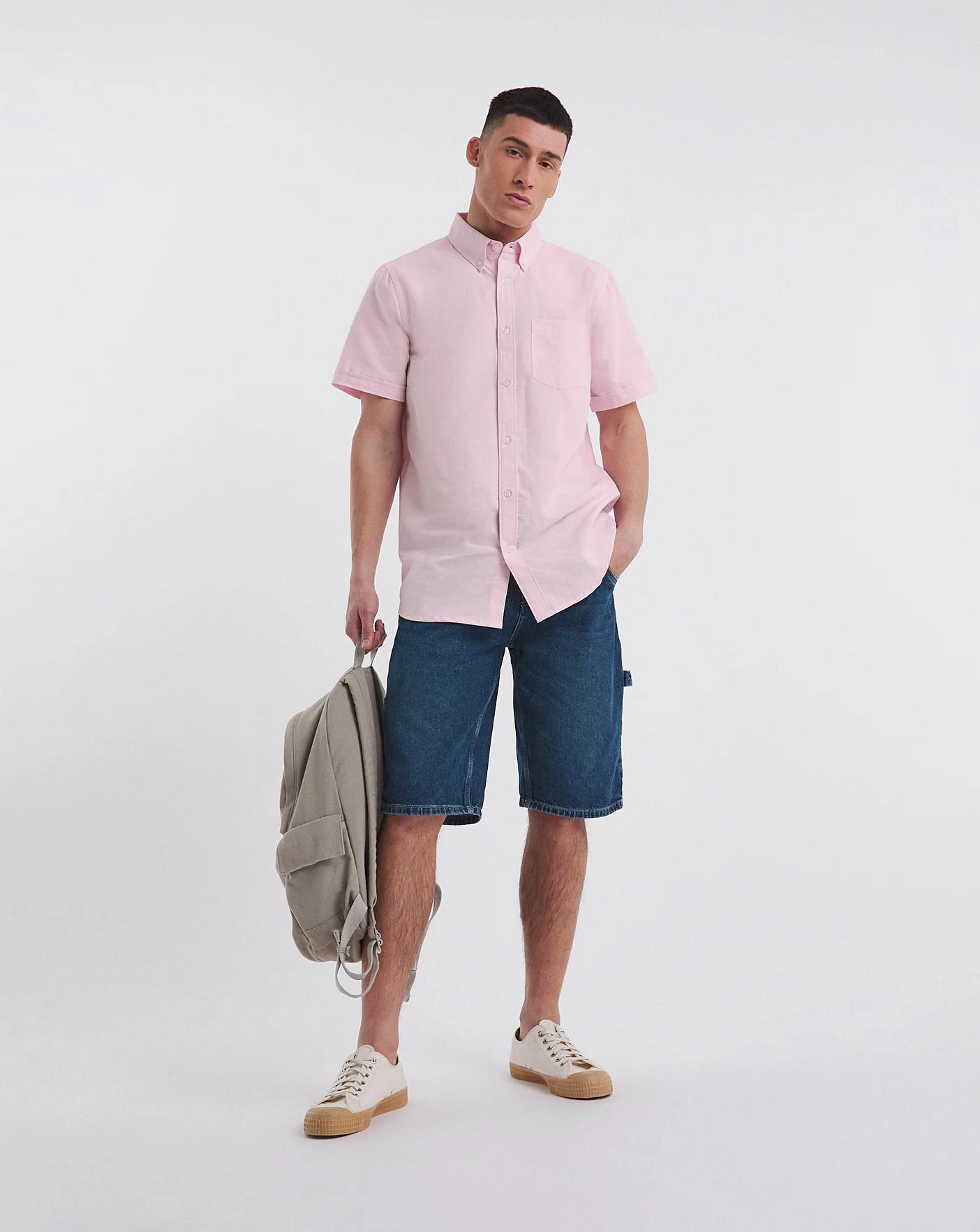 This Jacamo short sleeve oxford long shirt in pastel pink is a great everyday shirt to have in your wardrobe. Pair it with some smart trousers for a smart casual look.
