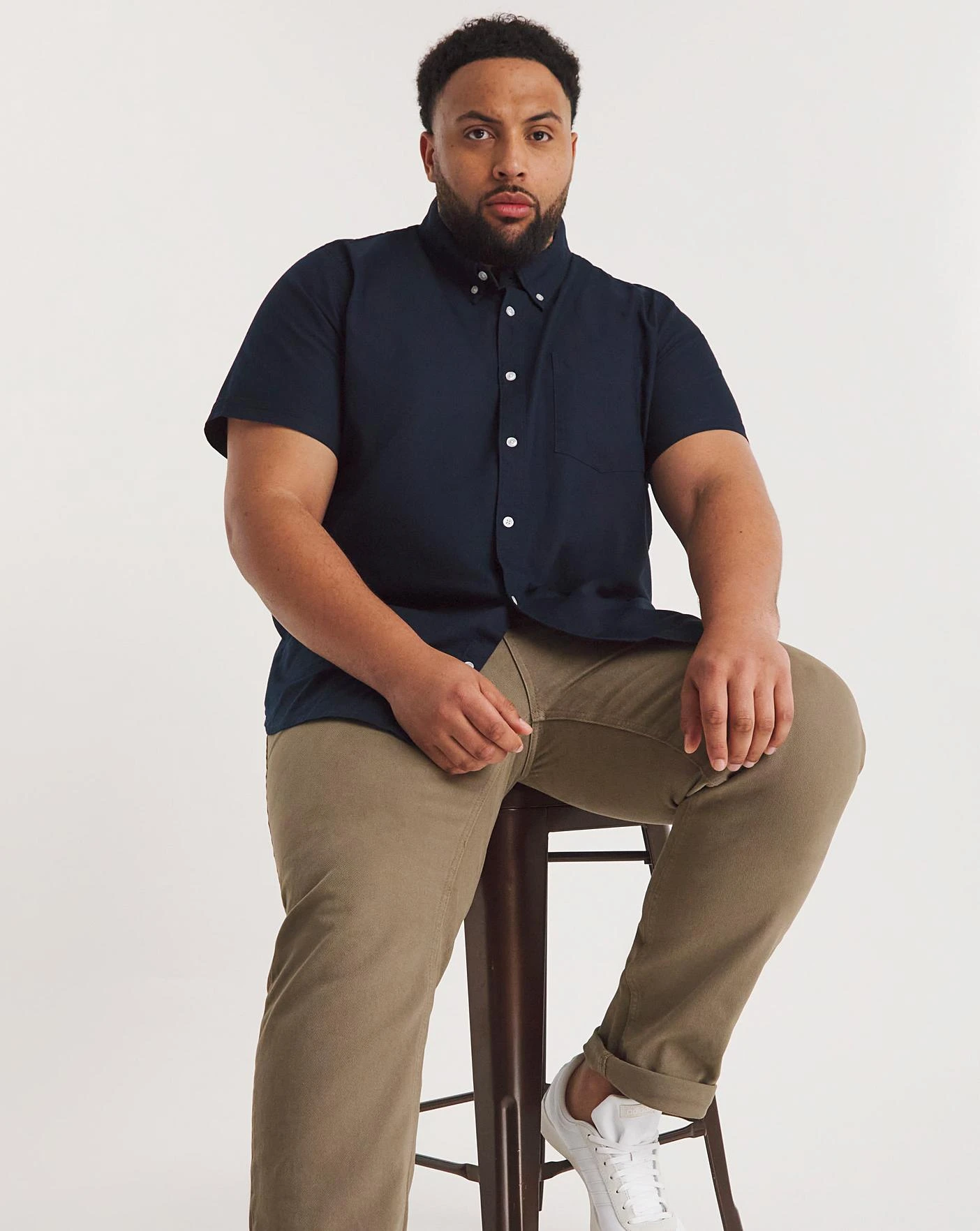 This Jacamo short sleeve navy oxford shirt comes in a regular and long. Perfect for everyday, pair it with some chinos and trainers for a casual look.