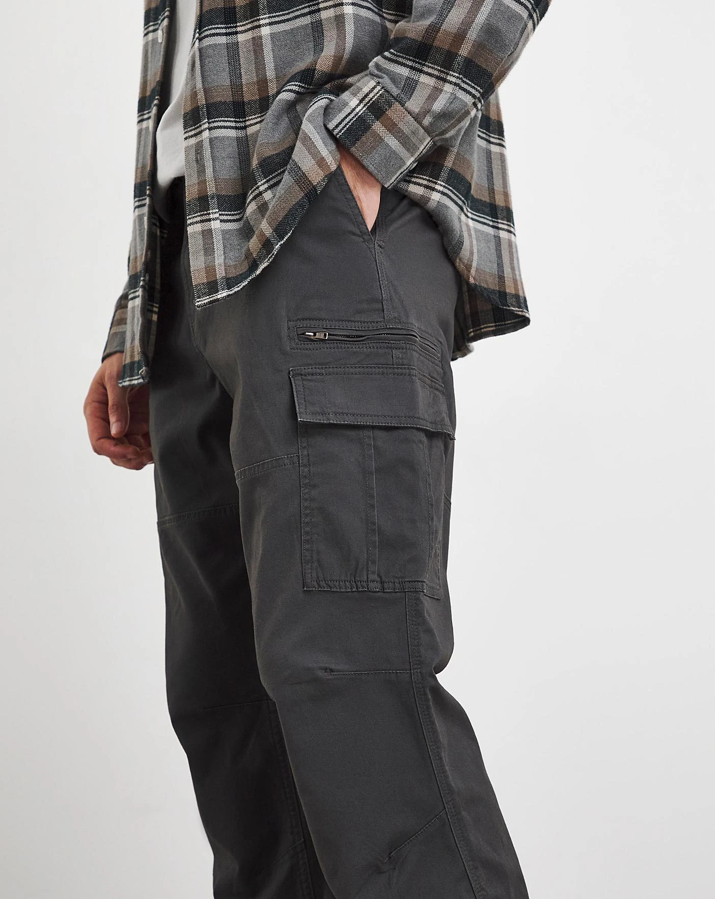This twill cargo trouser is fresh and smart for the season. In charcoal, these trousers can be paired with a polo or t-shirt for a casual yet trendy look.